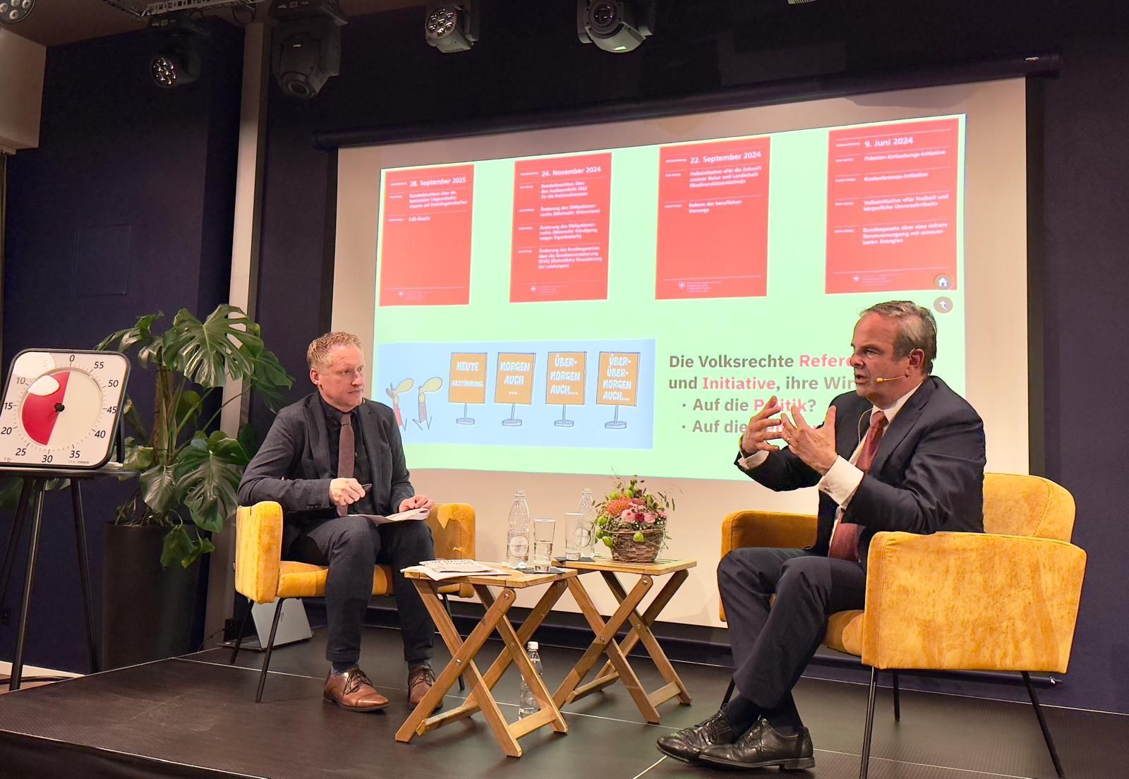 Durch die 60 Minuten Politik Backstage führt Michael Strebel, Politikwissenschaftler. Das Publikum wird eingeladen, Fragen zu stellen. 60 Minuten für alle, die Politik aus nächster Nähe erleben möchten.